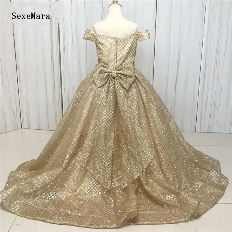 2019 Lentejuelas Bebe Nina Flor Princesa Vestido De Boda Para Boda Fiesta Oro Chica Vestido De Noche Vestidos Floreados De Nina Aliexpress