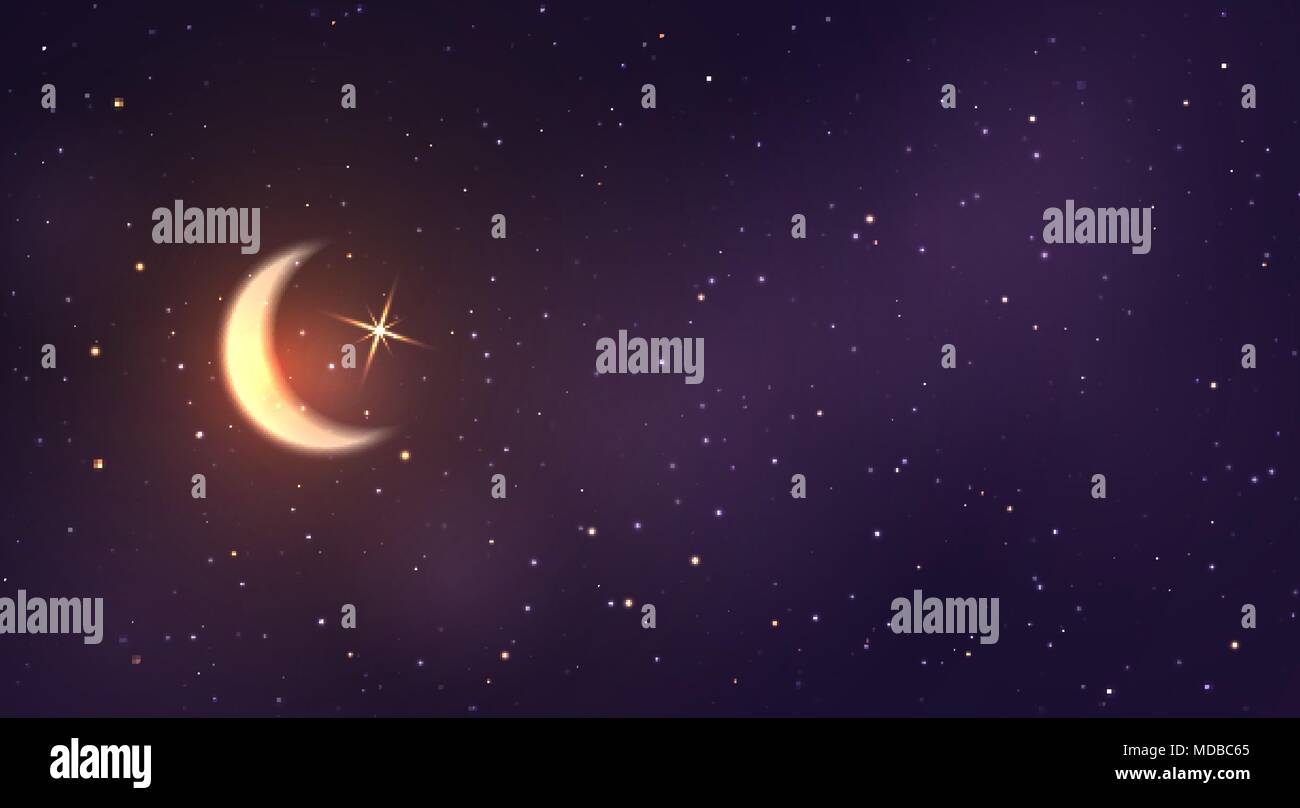 Crescent moon on the background of space with bright stars. Half a month is shining in sky Stock Vector Image & Art - Alamy