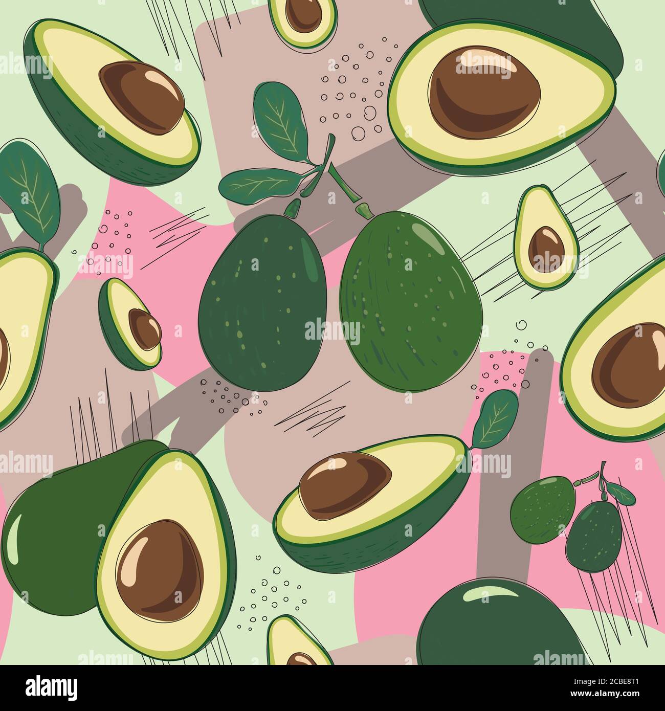 Vector Patron Sin Costuras Con Aguacate Verde Fresco Ilustracion Dibujada A Mano Diseno De Moda Para Los Estampados Y Fondos Textiles De Moda De Verano Vegetariana Imagen Vector De Stock Alamy