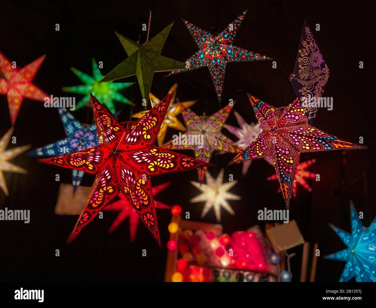 Illuminated Christmas stars as a decoration with a beautiful bokeh Stock Photo - Alamy
